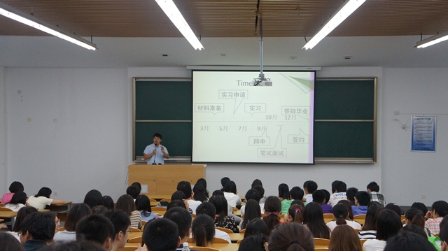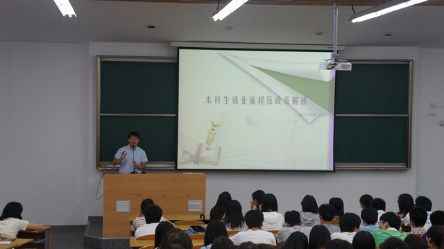 首先,刘老师向2013届毕业生介绍了学院2012届毕业生的就业总体情况,用数据让同学们清楚的认识到就业存在的压力和挑战。接着,刘老师向同学们着重介绍了本科生就业的相关流程和政策,包括就业协议书重要性、报到证的作用和办理、毕业户籍迁移及落户政策、毕业生档案等几个方面的问题。最后,刘老师强调了毕业生在就业求职过程中应该注意的问题,包括简历制作、衣着和言行等方面的问题,希望所有毕业生能找到一个满意的工作。