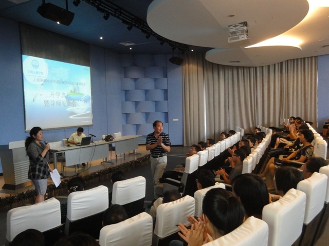 2012年9月12日(周三)13:30,免费成人电影 在交运报告厅召开2012级新入学研究生开学典礼暨导师见面会。免费成人电影 院长施欣教授和学院多位教授、副教授莅临本次典礼,与2012级研究生零距离接触,为同学们开启新的学习生涯,点燃梦想火花指出了方向。