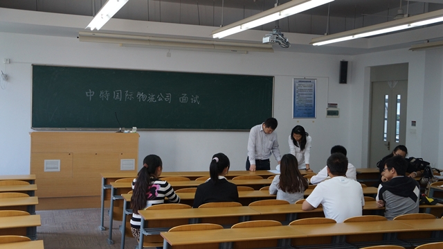 首先,周总经理详细介绍了公司经营的各项业务、部门组成以及招聘、录用人才的培养计划,让在场的同学对中特物流有一个更为全面直接的了解,也对岗位的发展和培养有了大致的认识。然后,公司对前来参加宣讲会的同学进行专业知识笔试。最后,中特物流对同学们一一进行面试,面试结束后,经理团仔细进行了候选人的筛选,初步决定了进一步面试的名单。