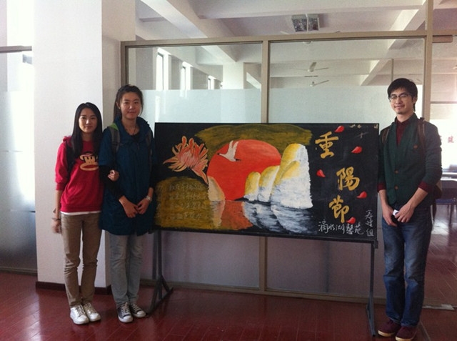 为了更好的宣传中华民族尊敬老人的传统美德,重阳节前夕,我支部派同学前往滴水湖馨苑居委会设计重阳节主题黑板报。重阳节当天,我们又派学生跟随滴水湖馨苑居委会工作人员前往几户老人家中进行慰问走访,大家不仅主动陪老人聊天,还帮助老人打扫了房间卫生。