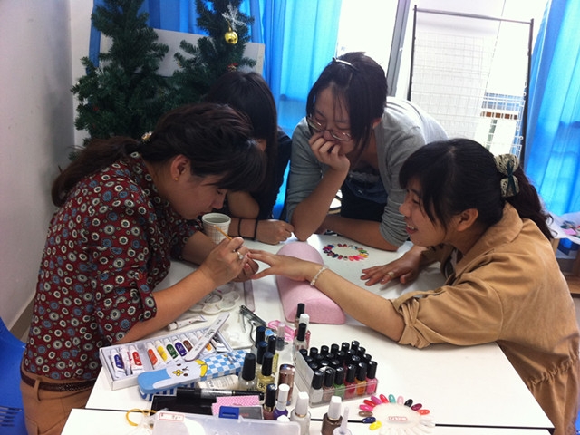 10月24日下午,50-51号楼宿管会在楼内办公室举办了一场以“争做魅力女生,炫出你的闪亮”为主题的魅力女生推广活动。自管会特意邀请了著名美甲师为同学们进行有关如何提升与展现自我魅力的指导,并现场为同学们做美甲培训。
