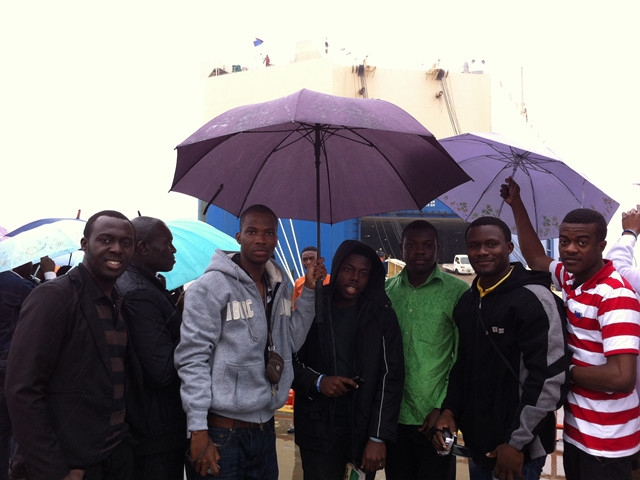 5月17日免费成人电影 非洲班学生一行36人在学院老师的带领下冒雨前往外高桥六期,参观上海海通国际汽车码头有限公司。