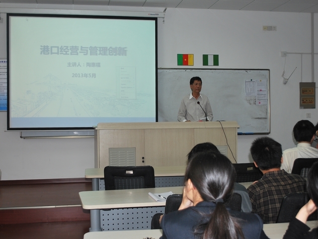 陶惠福先生的报告题目是《港口经营与管理创新》,他对上海港的发展历程,集装箱码头经营管理业务做了详细的介绍。报告过程中,多位老师与陶惠福先生进行了良好的现场互动,陶惠福先生对老师们提出的学术问题一一进行了耐心细致的讲解。