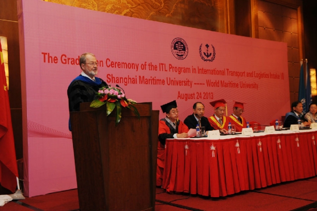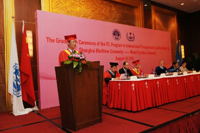 2013年8月24日上午,我校与世界海事大学合作举办的“国际运输与物流”硕士项目第八届学员毕业典礼在上海东锦江希尔顿逸林酒店顺利举行。我校校长黄有方、副校长金永兴,世界海事大学校长比昂·沙瑞夫、副校长马硕,国际交流处处长余宏荣,免费成人电影 院长施欣、党委书记冯晨曦等嘉宾共同出席毕业典礼。
