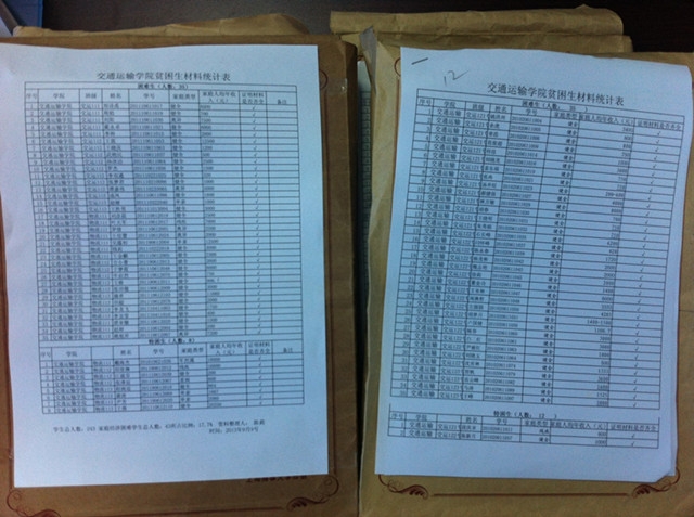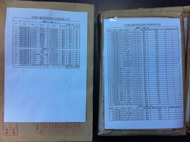 此次家庭经济困难学生认定工作规范有序,同学们也积极配合辅导员工作上交各项材料。辅导员首先对上交的申请表和相关证明材料进行统一初审,在进行班级、年级、院级的三级评议小组评议后确定公示名单,最终经过公示无异议的名单被确定为上报校资助中心的拟认定名单,并对所有困难生的材料进行了有序的档案袋归类整理。