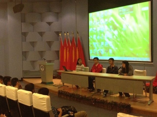 首先,朱老师欢迎大家参加此次海博学社,并就社团宗旨、意义、部门设置、活动开展等和大家作了介绍。随后,大二成绩优异的学长学姐们分享学习方法和一年沉淀累积而来的经验,对让许多同学担心的很多科目如高数进行了深入探讨,同学们个个聚精会神。最后,成员们提了很多问题,社团骨干也交流了许多对社团的规划,大家都对社团活动的开展充满信心和期待。