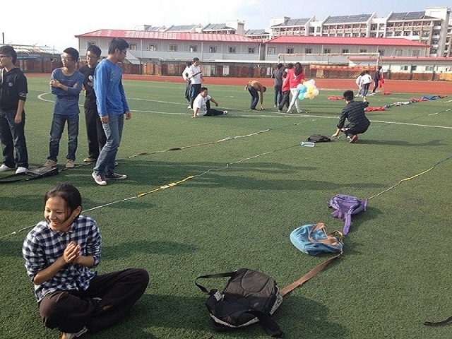 此次参与活动的学员共100人,分为10组。活动的第一部分以“破冰”为主题,在“躲气球”的小游戏中拉开序幕,同时也拉近了每个团队队员之间的距离,随后进行的“解手链”和“团体躲避球”让互不熟识的新生在欢笑中迅速打破在寝室、班级、社团活动中可能碰到的人际坚冰;活动的第二部分以“交流融合”为主题,,“家有恶犬”和“比长短”将此次活动带入高潮,培训师适时地引导让同学们领会到了如何在团队中锻炼自己的思考力及执行力,切身体会到了合作的乐趣所在。