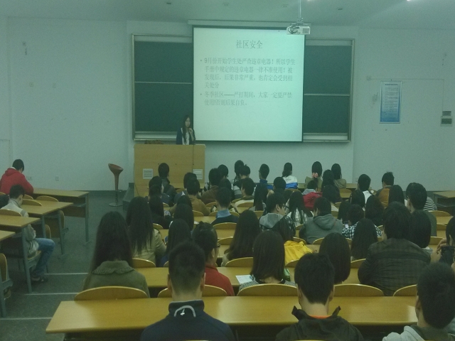 2013年10月28日晚上8点,交运物流11级学生在3D209开展了社区安全教育第一场系列活动—严格律己,防范未然。