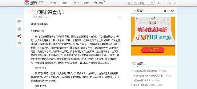 为了宣传大学生心理知识,预防大学生心理问题,11月25日晚开始交运学院于易班平台上开展了首期日常心理知识宣传活动,本次活动覆盖交运学院所有大一新生。