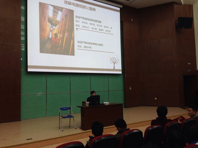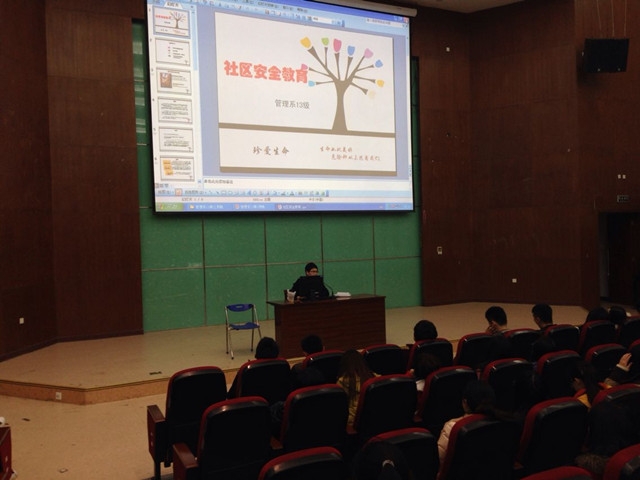 在举行的社区安全知识教育讲座上,辅导员徐晓毅向同学们展示了相关图片并介绍了许多重大的触目惊心的火灾案例、火灾隐患,介绍了有关消防常识及相关的消防标志和实物等,使同学们真切地了解了火灾的危害,引起同学们的警觉。特别是废旧插座、危险电线等违章电器引发的火灾事故实例,实实在在告诉了同学们危险就潜在我们的身边,大家在日常学习和生活中,一定要遵守社区安全规定,杜绝违章电器,加强自我防护,做到防患于未然。
