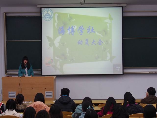 2014年3月16日晚,免费成人电影 海博学社在教学区3D107教室举行海博学社全体社员大会。海博学社指导老师朱红红及全体海博成员参加此次大会。