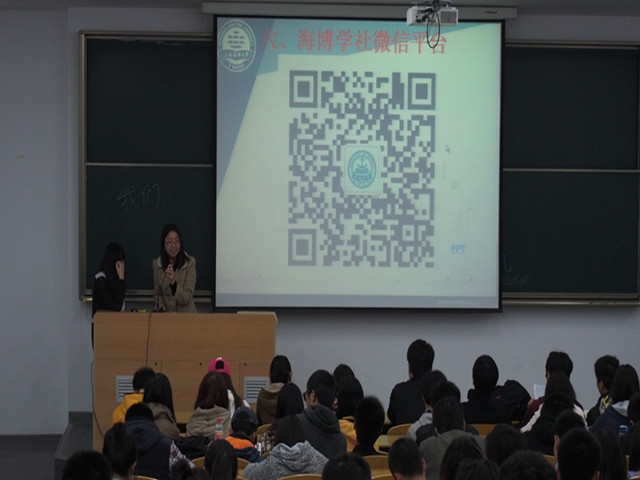 2014年4月13日,在免费成人电影 各年级专业晚点名上,海博学社对全体学生进行了海博学社微信平台宣传活动。