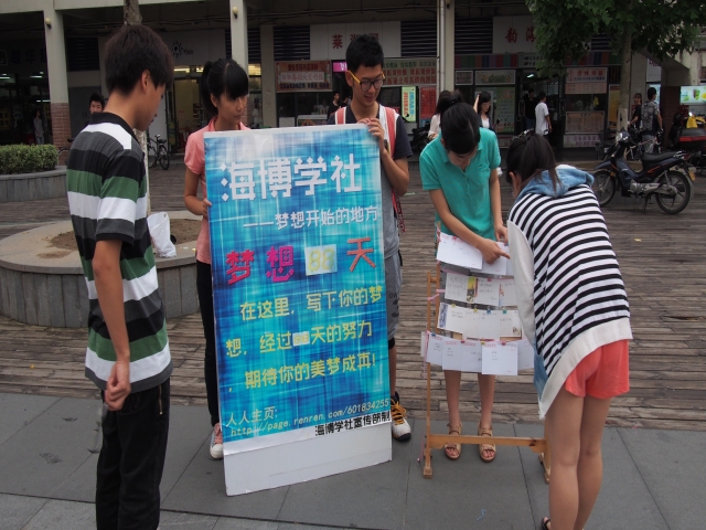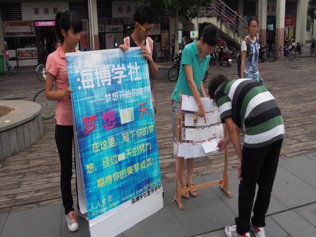 2014年6月18日,免费成人电影 海博学社在北广举行了一次对梦想八十八天活动的总结—返还明信片活动。本次活动通过海博学社成员摆摊宣讲的形式完成。