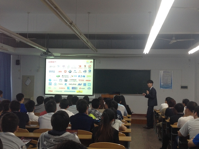 2014年10月22日下午15:00,上海安吉汽车零部件物流有限公司周祎杰经理等一行人来我校招聘应届生,我校国航、交通运输、物流管理、计算机、会计、财务管理等专业学生参加了本次的宣讲会。