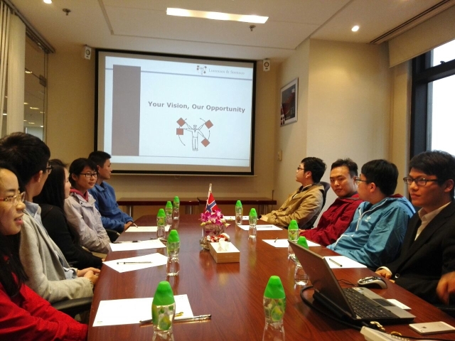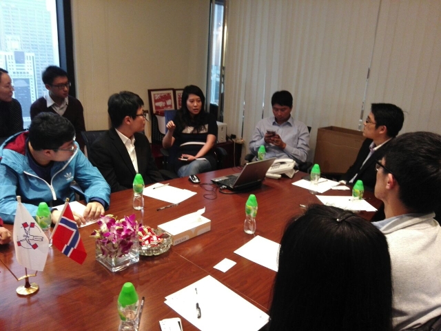 2014年11月25日下午,免费成人电影 学工办就业负责人都志亮老师带领来自国航11、物流11.国航12级的12名学生走访了挪威罗伦胜公司上海代表处。挪威罗伦胜公司上海代表处郑璐璐女士,丁海宁先生、罗雅洁女士、赵云汉先生热情接待了大家。