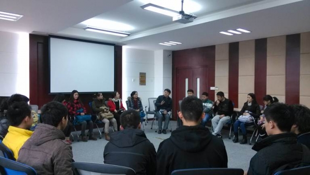 首先,刘老师询问同学们近期的生活学习情况,表达了对同学们的关心之意。接着,刘老师鼓励大家和其他同学分享自己在2014年里的收获和对2015年的展望。大家积极发言,气氛融洽。有的同学说,在过去的一年里参加了很多校内的校外的活动,在与人相处的过程中改变了自己,既能锻炼能力又能通过自己的努力挣些生活费减轻家庭负担。另外有转专业和插班生的同学分享说,过去的一年最大的收获是通过自己的努力来到国航这个大家庭,开始了新的生活,在融入新的环境中得到了许多同学的帮助收获了美好的回忆。也有的同学说,在过去的一年里认真学习取得了奖学金。也有的同学说在假期支教活动中历练了自己,学会了关爱和付出。谈到对2015年的展望,同学们有的说要实现自己对自己的投资,做一个更有魅力的人,有的说努力学习争取拿奖学金,也有的说要学好多门语言,读更多的书,也有的说要学习做饭更多去体贴家人,虽然朴素却很真实而感动。在这样愉快的氛围中,同学们相互学习相互鼓励。最后,刘老师用一句话勉力大家“有梦可以追,有人可以爱,有事可以做,找到自己的目标并自信地勇敢地坚持下去” 。