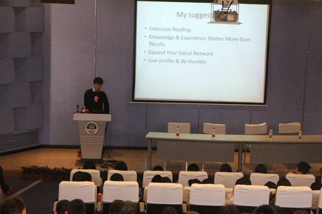 本次交流会邀请到了交运学院三名优秀毕业生,分别是考上北京交通大学硕士研究生的秦晶晶同学、保送南京大学硕士研究生的张梦君同学和申请上卡斯商学院管经纬同学。他们依次上台讲述了他们的个人大学经历,重点介绍一路走来的人生体悟并且在学习方面给在场学弟学妹提出了很多宝贵的建议。担当主持人的刘建老师在每位优秀毕业生演讲完后都作了简短的总结。最后是互动环节,到场的同学借此良机纷纷提出了自己有关学业方面的问题,优秀毕业生们都尽其所能给满意的答复。