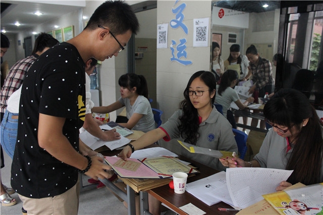 早上七点交运的志愿者们就已经在24、42和58号楼布置迎新场地,半个小时后迎新队伍便已全部到齐就绪。他们有的在门口辛苦地举着院旗接应,有的在接待处耐心地接受家长和新同学的咨询,有的微笑着为学弟学妹们办理手续,还有部分同学则在一旁引导办理完手续的新同学前往他们宿舍。虽然下着小雨,但他们依然热心的欢迎每一位新生的到来,帮家长学生们搬运行李,让刚踏入大学校园的新生们感受到了不一样的温暖。本科生新生辅导员都志亮老师及研究生辅导员陈莉老师全程参与,以确保迎新工作顺利完成。为了保证迎新服务的质量,免费成人电影 院长葛颖恩、党委书记冯晨曦、党委副书记赵睿老师亲临迎新现场,为家长和新生解答疑问,并对志愿者们的热情工作表示了感谢。迎新工作虽然辛苦忙碌,但志愿者的热情和用心使工作有条不紊。