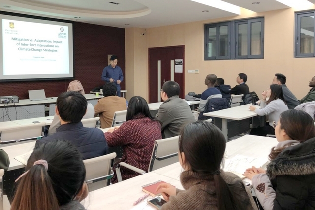 12月21日曼尼托巴大学蒋昌敏博士来院作专题讲座,讲座主题为:港口间相互作用对气候变化战略的影响,该讲座由学院郑士源老师主持,学院硕士、博士留学生及教师在内的约30人共同参加了本次讲座。