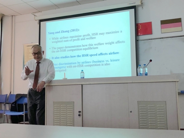 9月11日英属哥伦比亚大学教授Anming Zhang来访我院并用一整个下午的时间为我院师生作了2个主题的学术前沿讲座,讲座主题分别为“航空和高速铁路的竞争与合作:最新理论和经验分析”和“适应气候变化的影响和港口间的竞争:现在投资还是以后投资”
