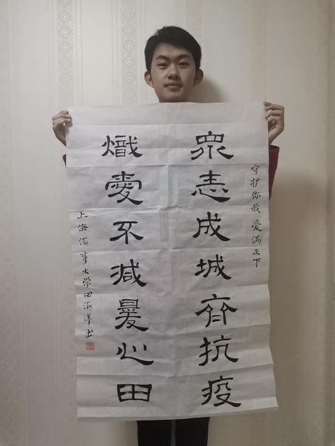 学生撰写书法作品助力抗疫