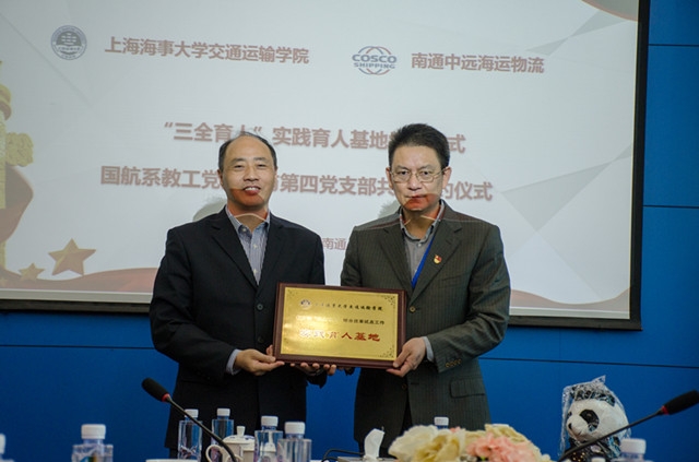 2020年10月27日上午,学院第一家“三全育人·实践育人”基地——南通中远海运物流有限公司“实践育人”基地的授牌仪式在南通中远海运物流南四楼会议室举行。学院党委书记冯晨曦、副书记赵睿,南通中远海运物流党委书记胡东昕、总经理高桂东等出席了授牌仪式。