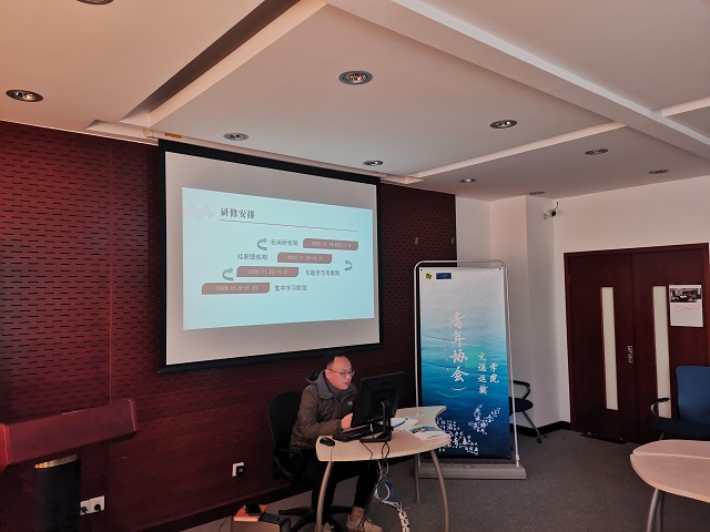 接下来,黄大为老师结合2020年上海市骨干辅导员高级研修班的学习心,同与会老师进行了交流分享。黄老师从集中学习阶段、专题学习考察期、挂职锻炼期、在岗研修期四个阶段介绍了其在研修班的学习经历,并结合自身感悟着重分享了集中学习阶段中专家们带来的政治理论类、思想政治教育类、网络信息类、新媒体展示类、心理健康教育类等专题讲座;黄老师表示其在研修班的学习受益匪浅,在理论和实践上对其今后开展育人工作都起到了很好的指导作用,希望今后有更多机会参与辅导员专业培训,交流会最后在老师们热烈的讨论中圆满结束。