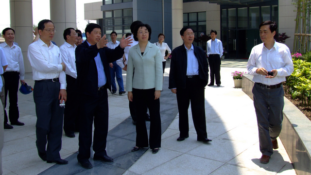 图七 2007年5月市委副书记殷一璀视察建设中的新校区