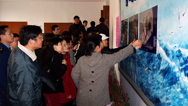 图一 2003年12月教职工喜闻学校整体搬迁临港新城