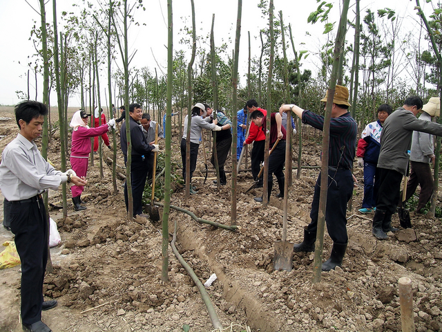 图五 2005年2005年4月新校苗圃基地植树
