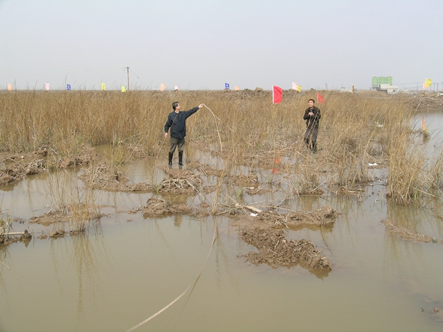 “浅种密栽,洗盐排水”是试验区忙了2年多总结出来的研究成果,就八个字,尤其是前4个字,教科书上是找不到的,但确实有效有用。为了这几个字成果,坚守在这里的员工们确是付出了巨大的劳动。一年半后我们统计了苗木成活率,发现喜酸性土的植物几乎全军覆没,适应中心土的多半成活,略带碱性土的适应良好。同类成活之中也有差异,浅种密栽明显好于其它种植区。为了进一步验证,在苗圃外围西北区种植了一大片大叶樟和香樟,一年后居然全部成活,长势也好。但,浅种密栽养护难度大,这里近海边经常有大风,加上周围没有遮挡,直接要面对海风,因此要经常做加固防风工作,几百苗木几个人要好几天才能完成,尤其遇台风更是辛苦。