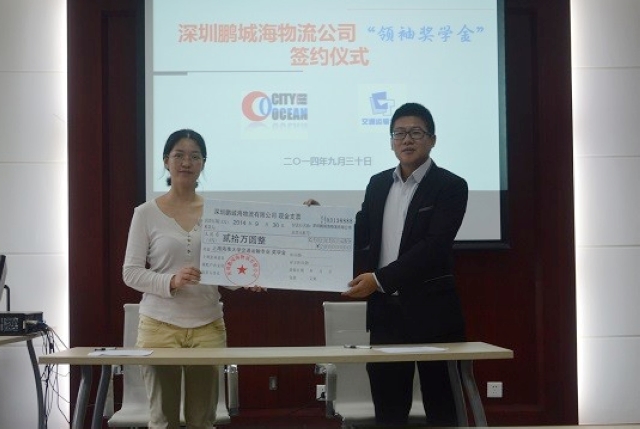 接着,深圳鹏城海物流有限公司华东区总经理郁凯宇先生对公司的业务模式、发展历程和公司规模,本次奖学金设立的背景、过程、目的和意义向在座师生们做了简要介绍。“领袖奖学金”不仅表彰勤奋学习、成绩突出的优秀学子,也激励同学们在学习、工作、生活中不断努力学习与实践,不断完善人格,提高综合素质,增强社会责任感,掌握更多的本领和技能,激发同学们的学习积极性和社会实践热情,帮助同学们开拓视野,培养和提高社会实践能力,为祖国的航运建设做出应有的贡献!