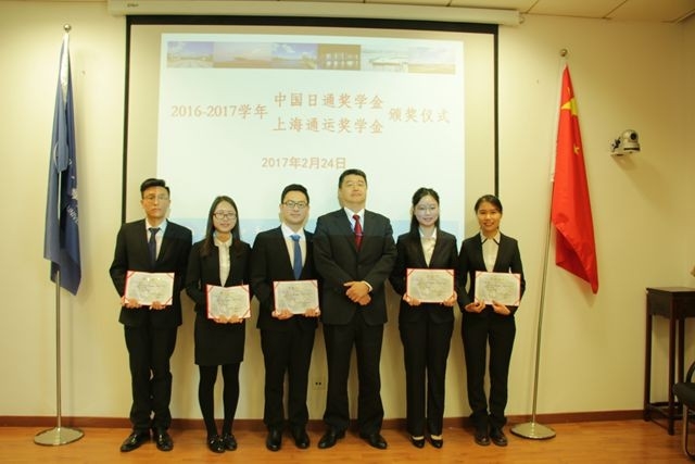 2017年2月24日下午,第一届“中国日通奖学金”和“上海通运奖学金”颁奖仪式在免费成人电影 临港校区行政楼148室举行,日本通运株式会社执行董事、东亚地区总裁、日通国际物流(中国)有限公司董事长杉山龙雄先生,日通国际物流(中国)有限公司总经理松尾纯利先生,上海通运国际物流有限公司总经理小黑一兴先生,日通国际物流(中国)有限公司行政管理部长竹下兆一先生,东亚地域总括室总务部经理海原渚女士,上海通运国际物流有限公司总经理秘书沈成千女士;免费成人电影 王海威副校长,免费成人电影 冯晨曦书记,学生处李志鹏处长、雷丽副处长,免费成人电影 赵睿副书记,免费成人电影 辅导员陈莉、陈祯如、张伟磐三位老师及十位获奖学生出席,仪式由赵睿老师主持。
