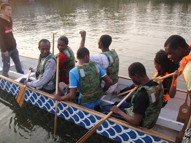 On the afternoon of October 31, 2012, college of transport and communications organized Ghana students to learn to row dragon boats.