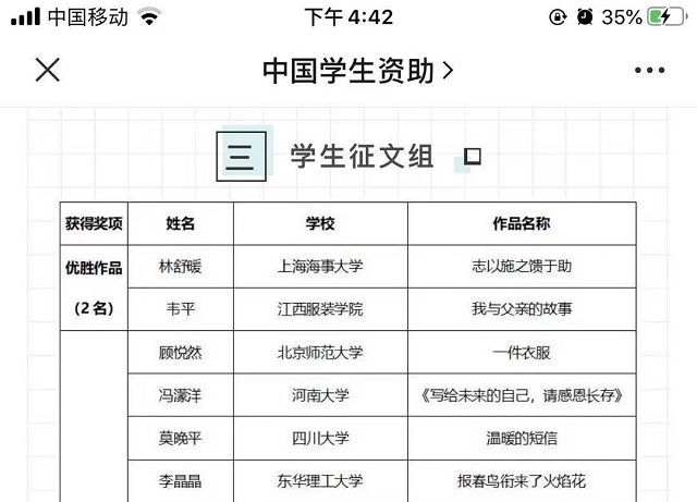 2020年11月2日至2020年12月31日,第七届“助学·筑梦·铸人”主题活动暨2020年“千校万岗·精准帮扶”就业专项服务行动向广大高校师生征稿。免费成人电影 学院交通工程专业研究生林舒暖参加此次活动并投稿,所撰写的文章《志以施之馈于助》获得了学生征文组优胜作品奖。