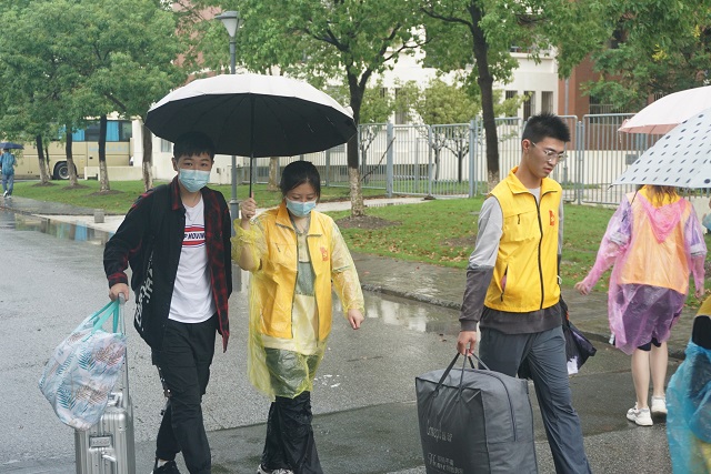 志愿者们帮助新生搬运行李