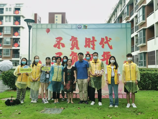 学院党委书记石娟老师、副书记赵睿老师和志愿者合�