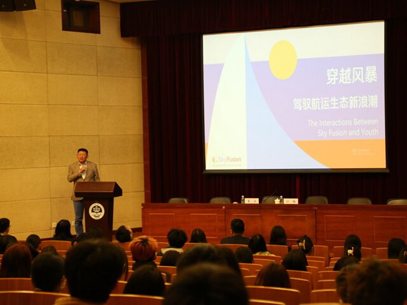 姜董事长以“穿越风暴 驾驭航运生态新浪潮”为主题,向师生们介绍了上海天融供应链有限公司的全球业务和物流解决方案,并分享了在干散货运输和风电运输领域的挑战与应对策略。讲座中,他通过NEWLEAD散货轮的案例,深入分析了行业挑战,同时结合风电运输实例,从多个角度展示了天融的工作方式和行业洞察。在互动环节,姜董事长耐心回答了师生们的问题,并与提问者合影,增进了交流。